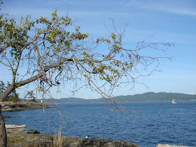 The ferry to the islands left from Tsawassen port, southwest of Vancouver. It took just under an hour to cross the Straight of Georgia, weave through the narrows of Mayne Island and Parker Island, and come to rest at the dock between two spits of land where Long Harbor Road comes to a dramatic end. Once off the ferry, Ben drove to the camp site on the southern coast near Beaver Point.